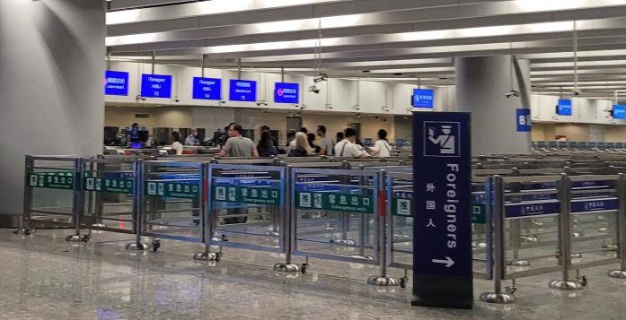 - Foreigners(외국인) 표지판이 있는 줄에 서서 여권을 제출하고 심사를 받습니다.
